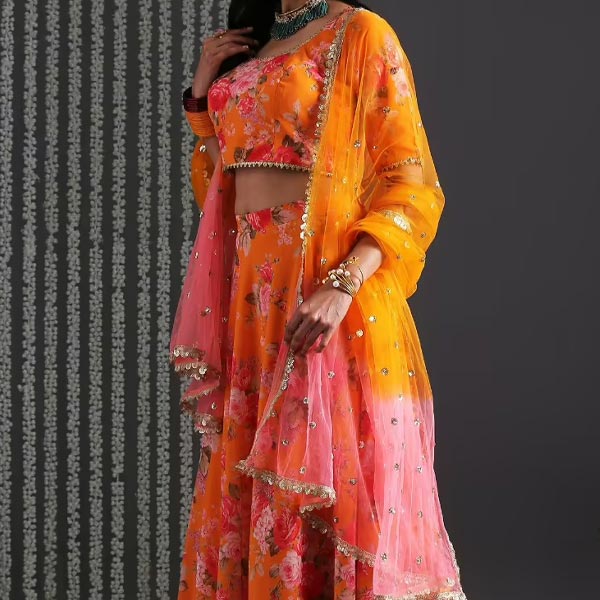 Look drop-dead gorgeous as you make your way to the next celebration wearing this Yellow Floral Skirt with Crop top & Dupatta Set from Gajra Gang. The floral printed crop top, skirt, and dupatta feature dainty embellishments and will help you flaunt a distinctive festive look. Pair it with make a statement at the next soiree!