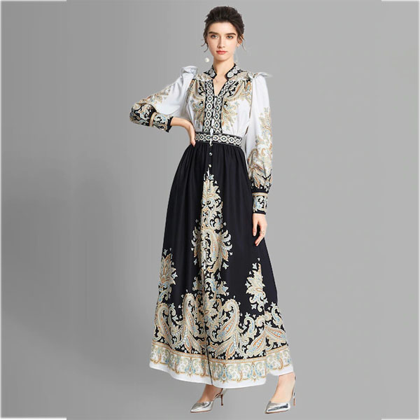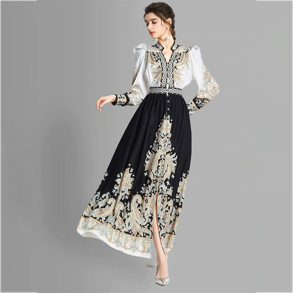 Women Black & White Ethnic Motifs Printed Maxi Dress