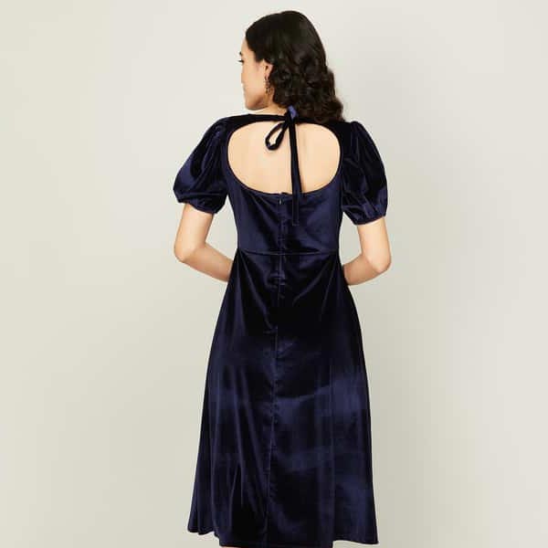Amp up your style with this bodycon dress, beautifully detailed with a solid tone, 3/4th sleeves, embellished keyhole neckline, and slim fit. Disclaimer: Please check the size guide before you buy. You may need one size bigger than other popular , (If you usually fit into Size S of other popular you may need Size M).